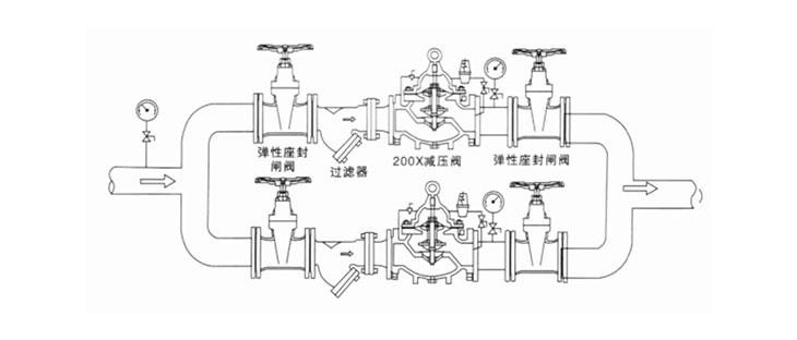 200X减压阀是一种利用介质自身能量来调节与控制管路压力的智能型阀门。可用于生活给水消防给水及其他工业给水系统,通过调节减压导阀,即可调节主阀的出口压力。出口压力不受进口压力、进口流量的变化而变化,安全可靠地将出口压力维持在设定值上,并可根据需要调节设定值以达到减压目的。该减压阀减压精确,性能稳定、安全可靠、安装调节方便,使用寿命长。