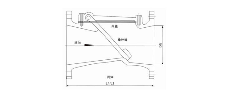 H44X(SFCV)橡胶瓣止回阀主要由阀体、阀盖及橡胶瓣三种零件组成。阀门中的橡胶瓣由钢板、钢棒开关寿命可达100万次。H44X(SFCV)橡胶瓣止回阀采用全流面积设计,具有水头损失小,不易堆积杂物,维修简便等特性。我们公司生产的H44X(SFCV)橡胶瓣止回阀主要适用于卧式安装的给排水系统,可安装于水泵出水口处,以防止倒流及水锤对泵损害。此阀还可安装在蓄水池进出水管的旁通管上,以防止池水倒流至给水系统中。